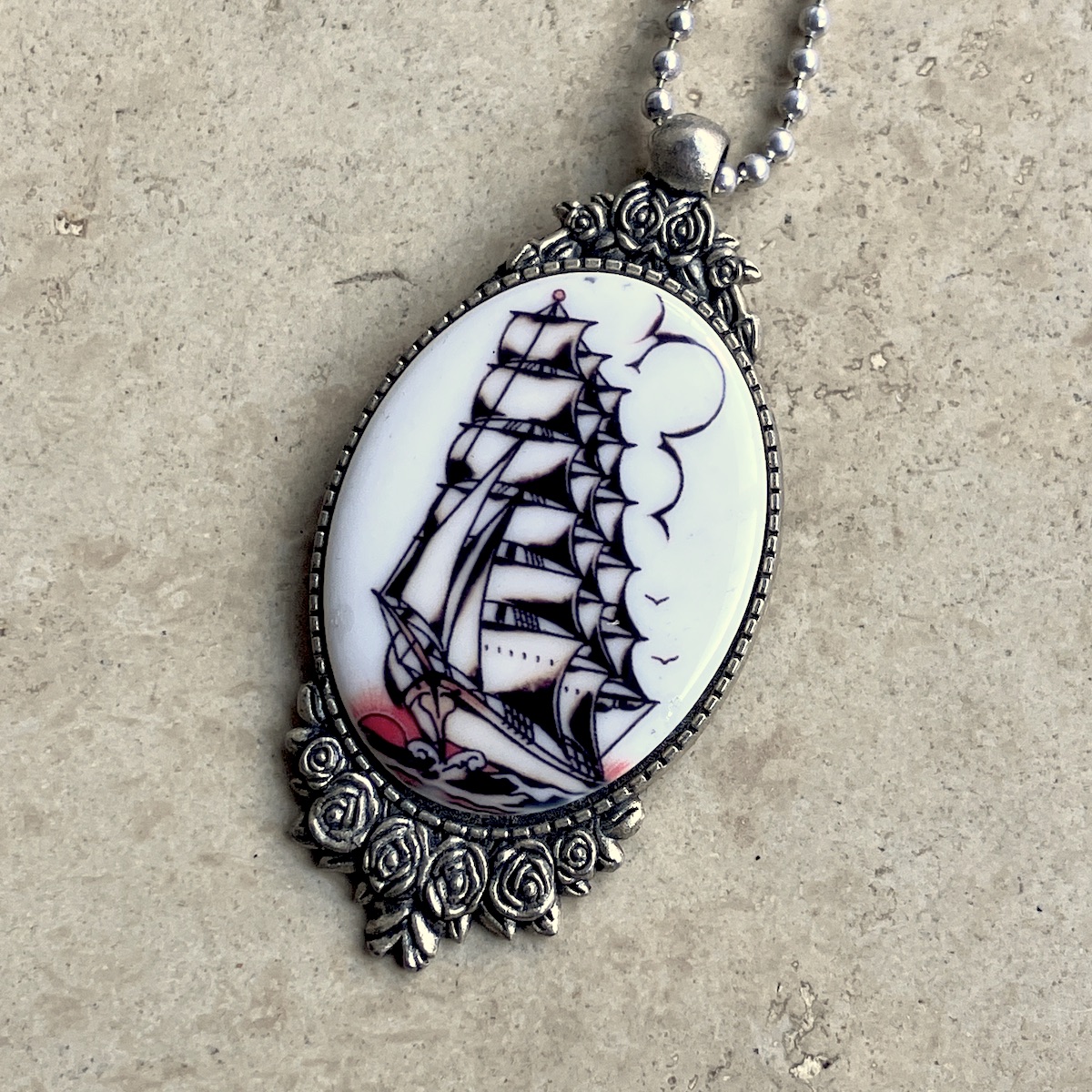 Bijou en métal orné d’un camée de 4 x 3 cm, imprimé artisanalement par mes soins.