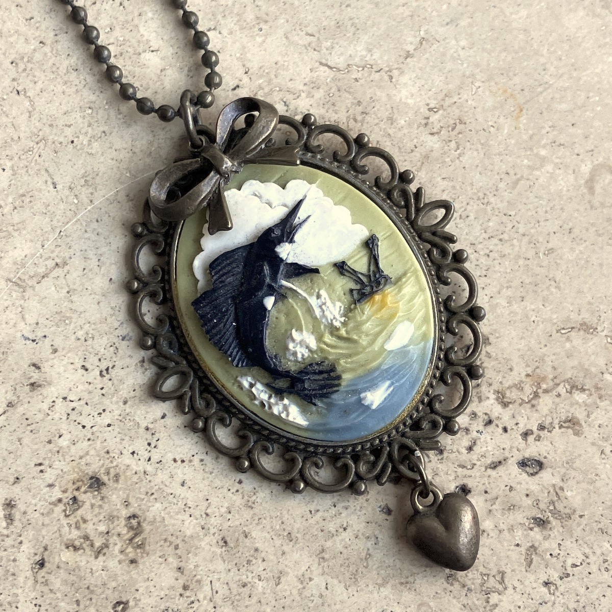Bijou en métal orné d’un camée résine de 4 x 3 cm.