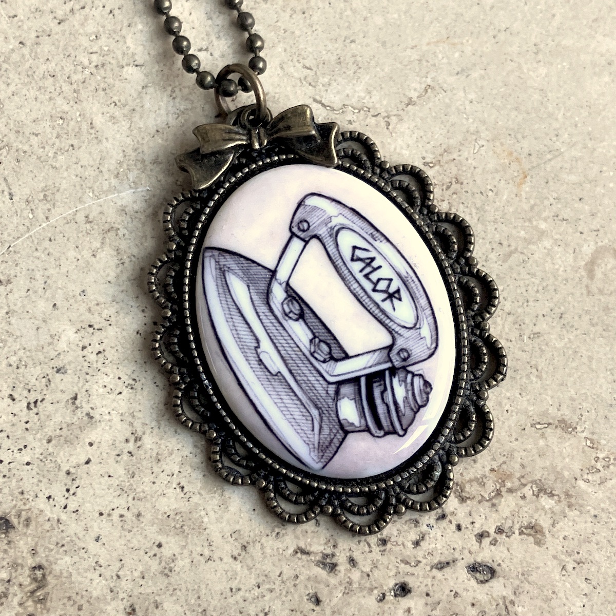 Bijou en métal orné d’un camée de 4 x 3 cm, imprimé artisanalement par mes soins.