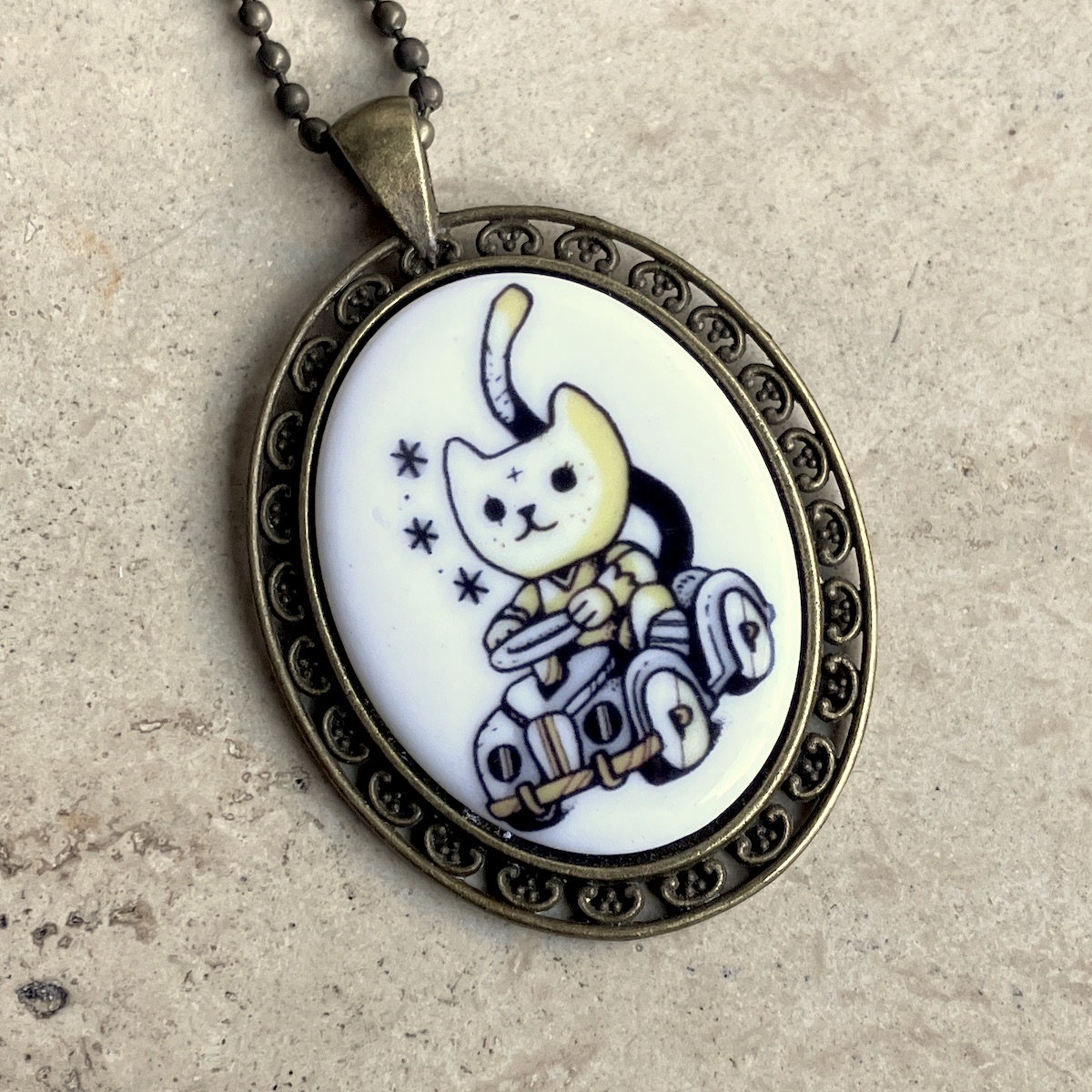Bijou en métal orné d’un camée de 4 x 3 cm, imprimé artisanalement par mes soins.