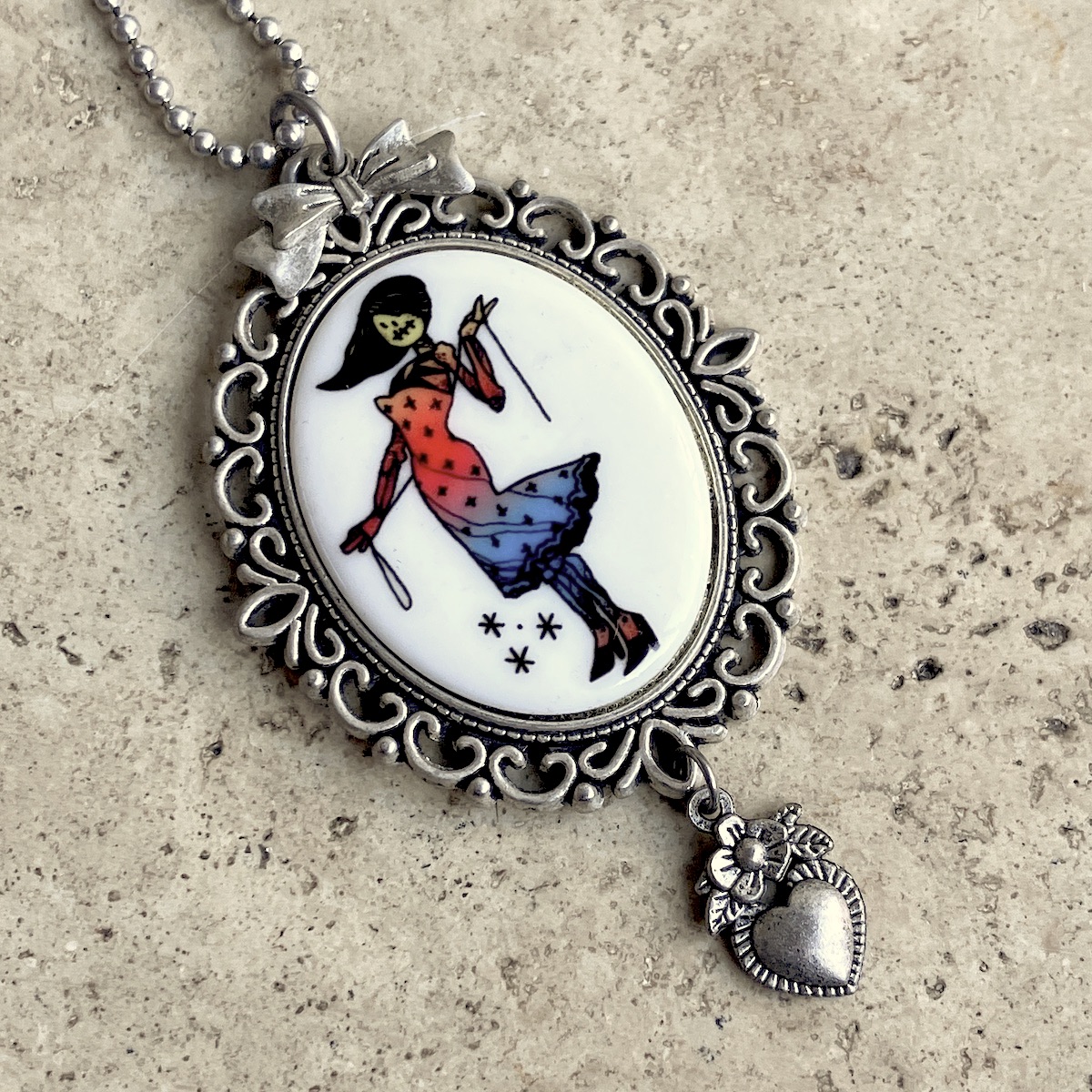 Bijou en métal orné d’un camée de 4 x 3 cm, imprimé artisanalement par mes soins.