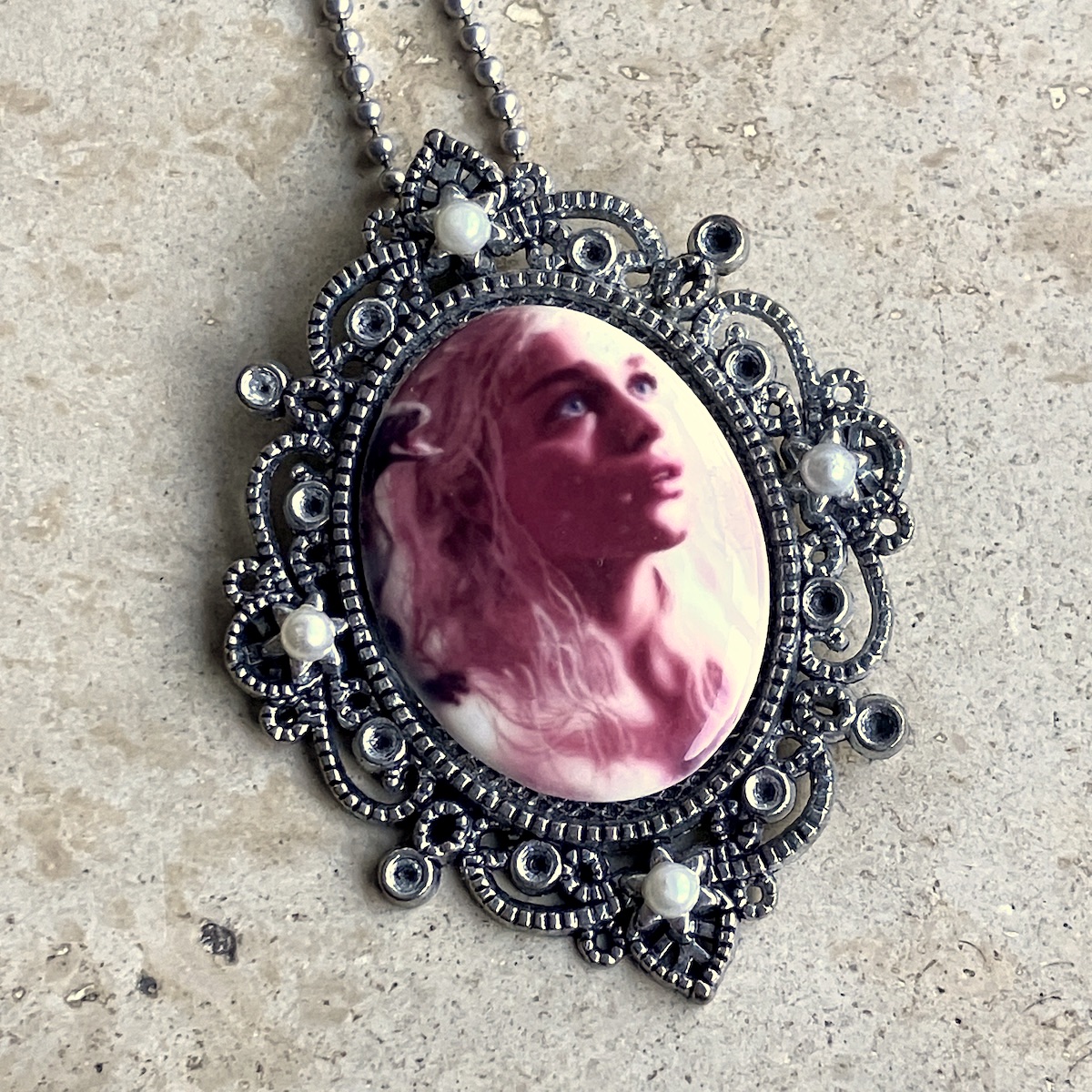Bijou en métal orné d’un camée de 4 x 3 cm, imprimé artisanalement par mes soins.