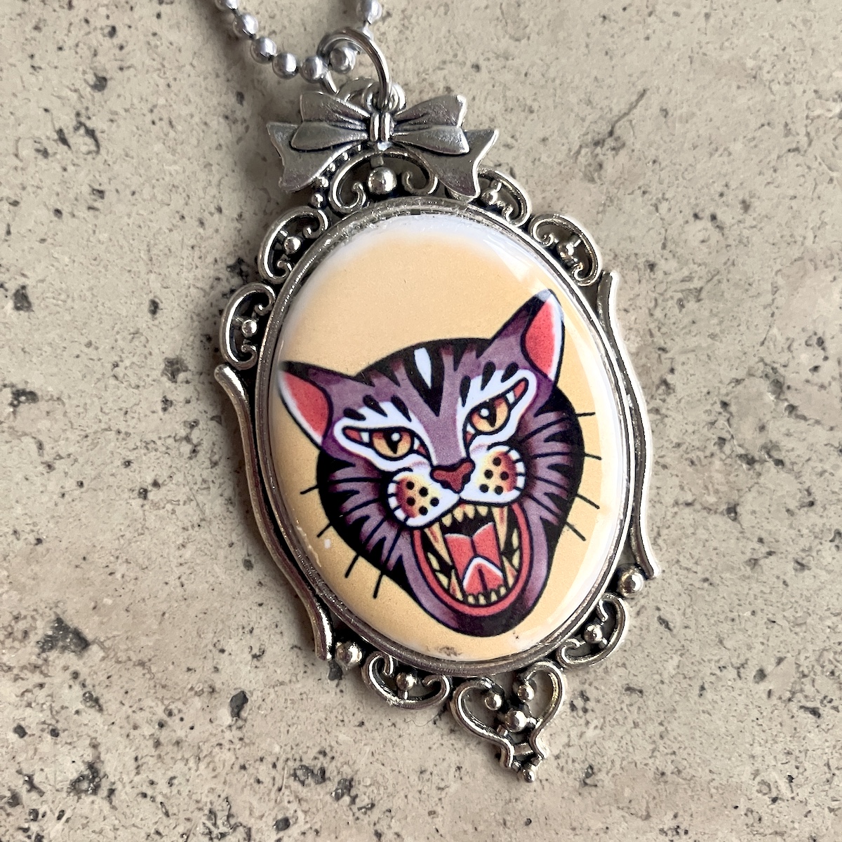 Bijou en métal orné d’un camée de 4 x 3 cm, imprimé artisanalement par mes soins.