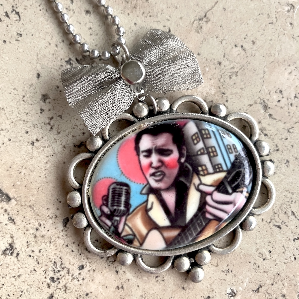 Bijou en métal orné d’un camée de 4 x 3 cm, imprimé artisanalement par mes soins.
