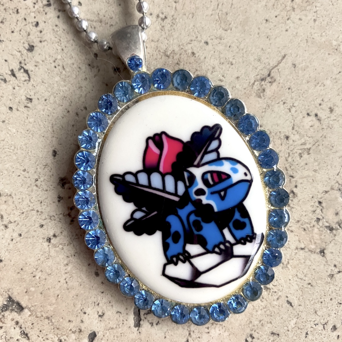 Bijou en métal orné d’un camée de 4 x 3 cm, imprimé artisanalement par mes soins.