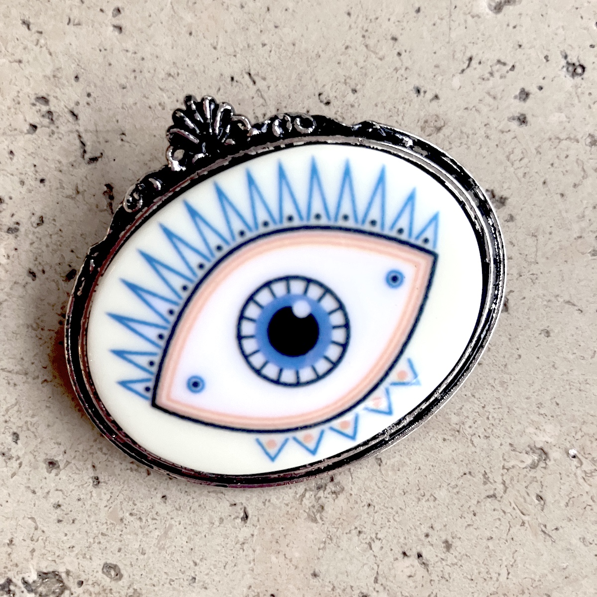 Bijou en métal orné d’un camée de 4 x 3 cm, imprimé artisanalement par mes soins.