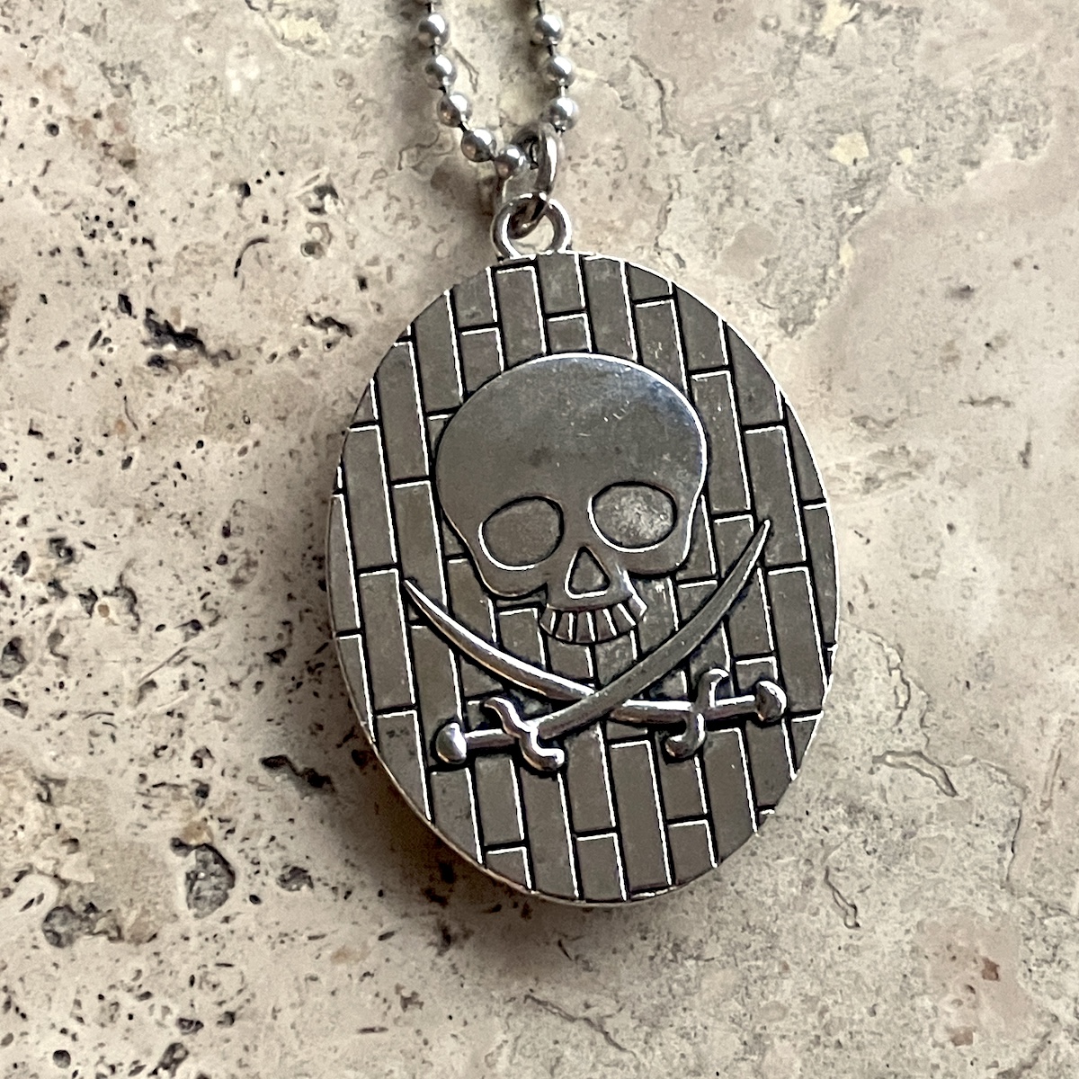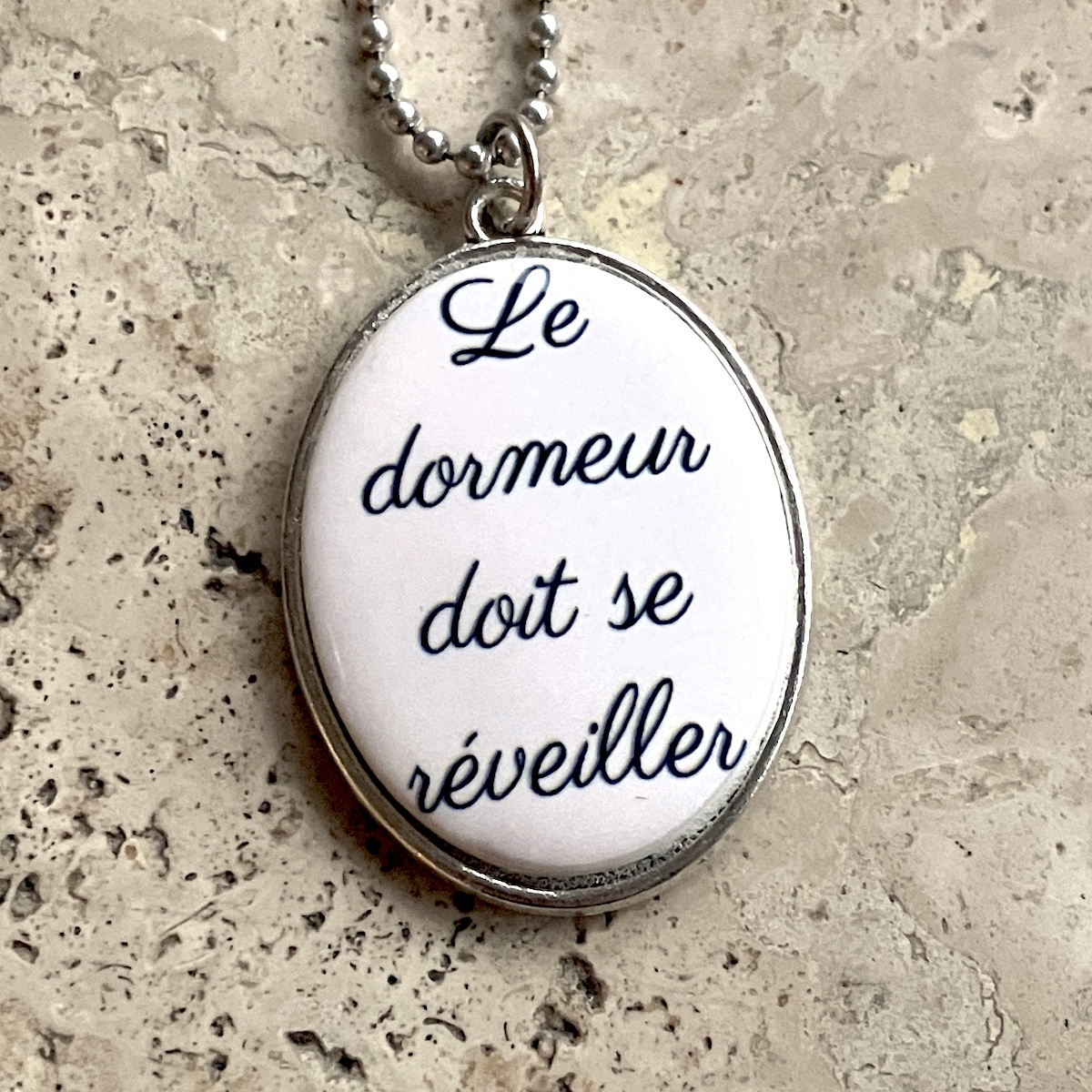 Bijou en métal orné d’un camée de 4 x 3 cm, imprimé artisanalement par mes soins.