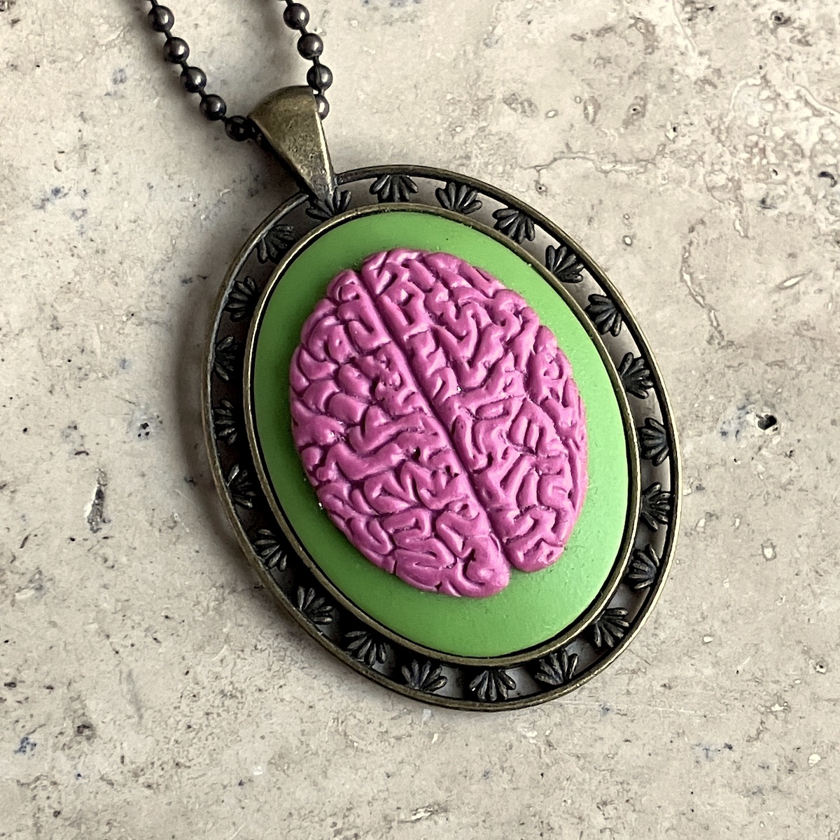 Bijou en métal orné d’un camée résine de 4 x 3 cm.