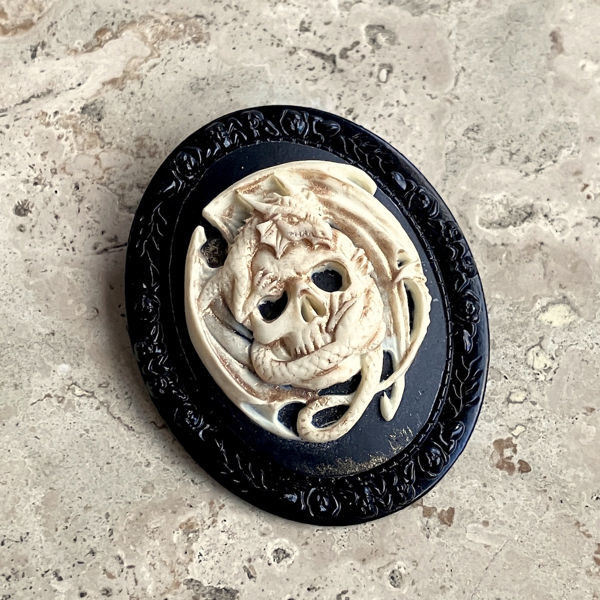 Les camées résines sont parfois patinés par mes soins à la peinture afin de faire ressortir les reliefs.