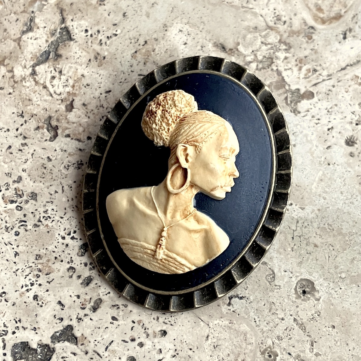 Broche en métal montée d’un camée en RÉSINE (4cm*3cm).