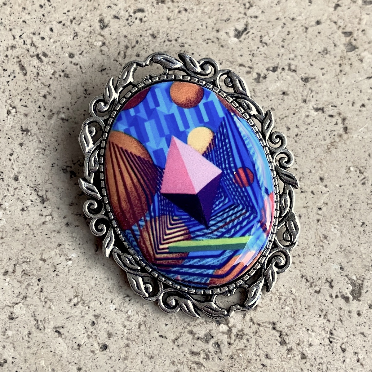 Broche en métal montée d’un camée en céramique (4cm*3cm) imprimée artisanalement par mes soins.