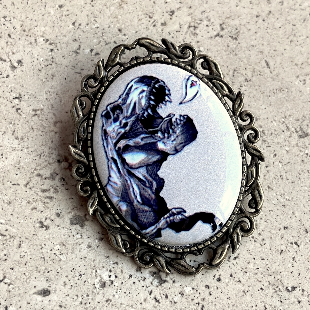 Pendentif en métal monté d’un camée en céramique (4cm*3cm) imprimée artisanalement par mes soins.