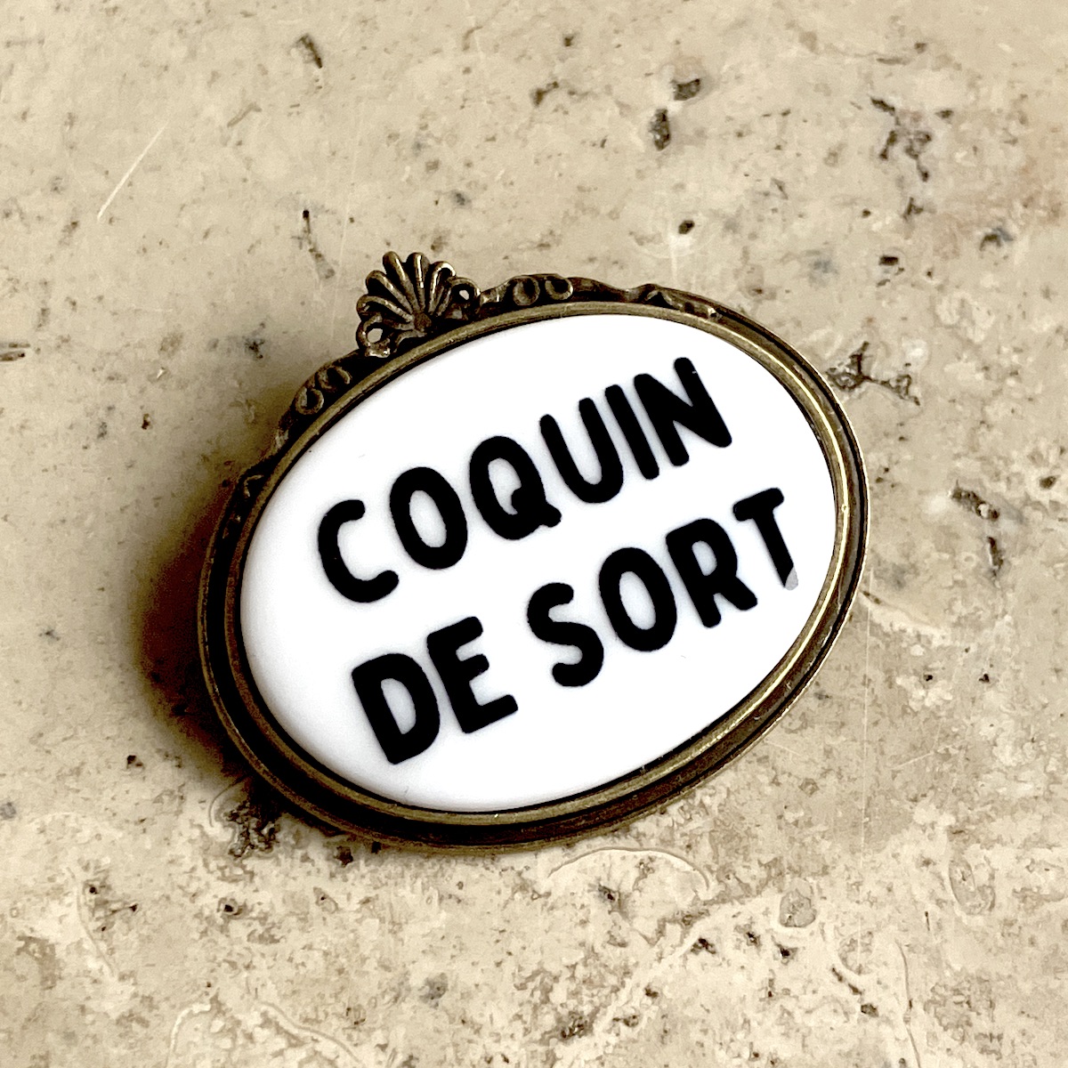 Broche en métal montée d’un camée en céramique (4cm*3cm) imprimée artisanalement par mes soins.