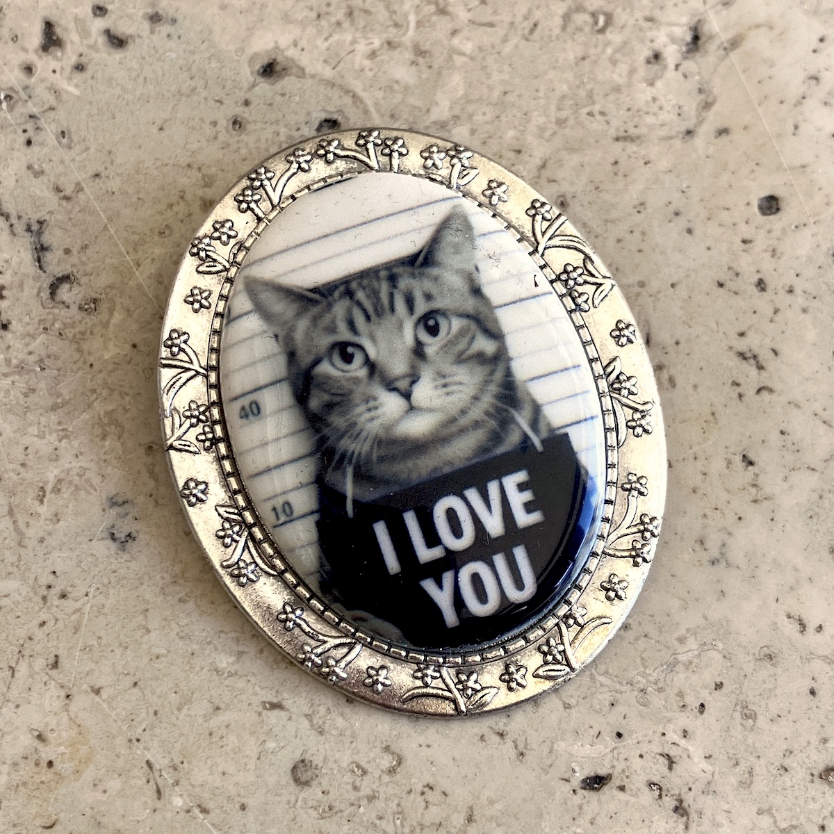 Broche en métal montée d’un camée en céramique (4cm*3cm) imprimée artisanalement par mes soins.