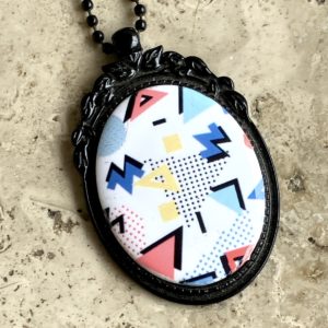 Broche en métal montée d’un camée en céramique (4cm*3cm) imprimée artisanalement par mes soins.
