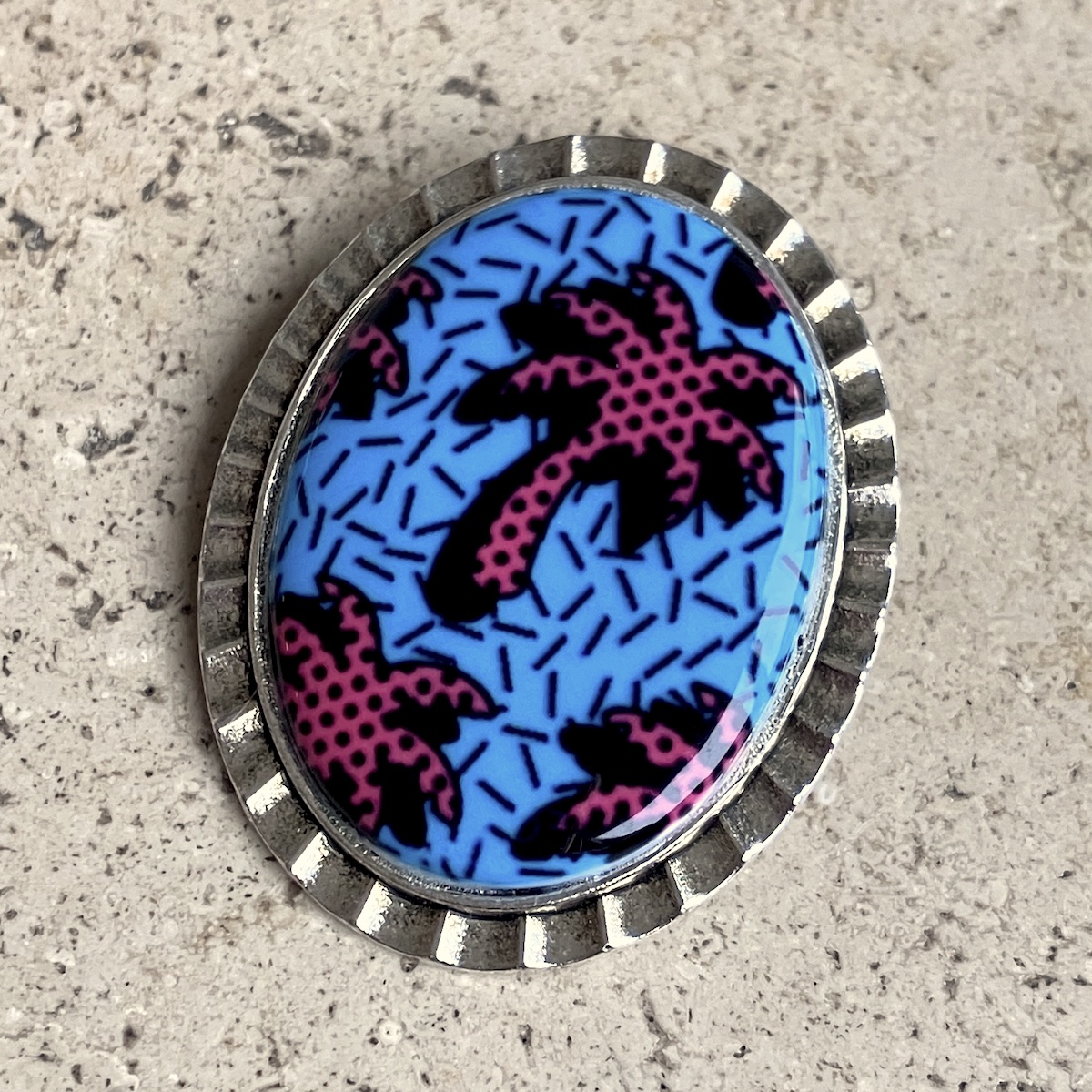 Broche en métal montée d’un camée en céramique (4cm*3cm) imprimée artisanalement par mes soins.