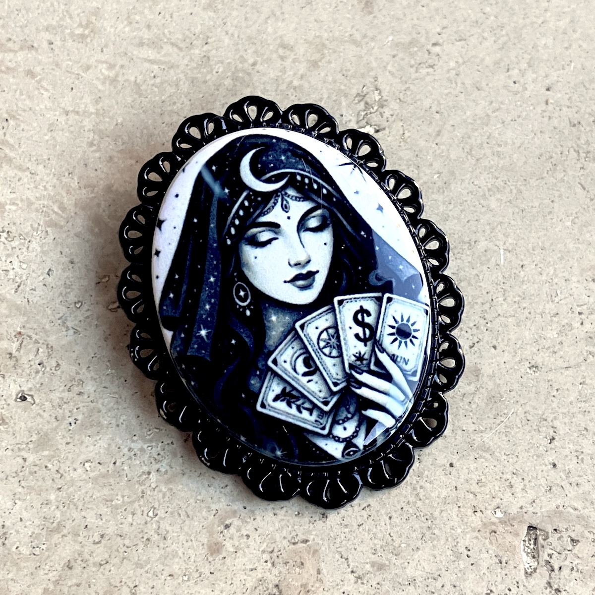 Commandable en mai !Broche en métal montée d’un camée en céramique (4cm*3cm) imprimée artisanalement par mes soins.