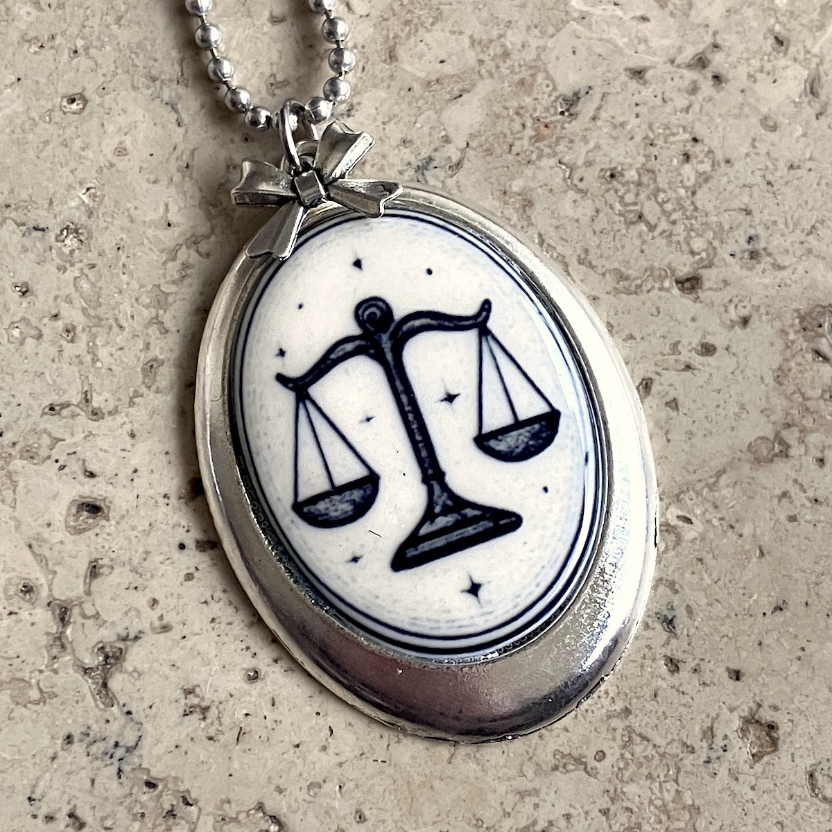 Pendentif en métal monté d’un camée en céramique (4cm*3cm) imprimée artisanalement par mes soins.