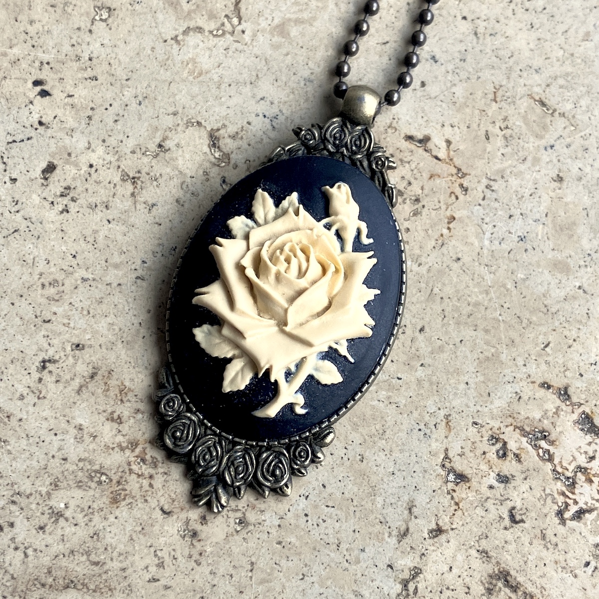 Pendentif en métal monté d’un camée en RÉSINE (4cm*3cm).