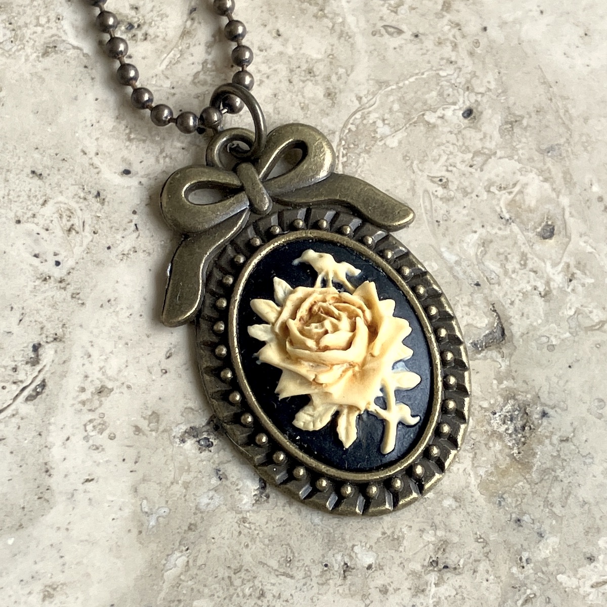 Pendentif en métal monté d’un camée en RÉSINE (4cm*3cm).