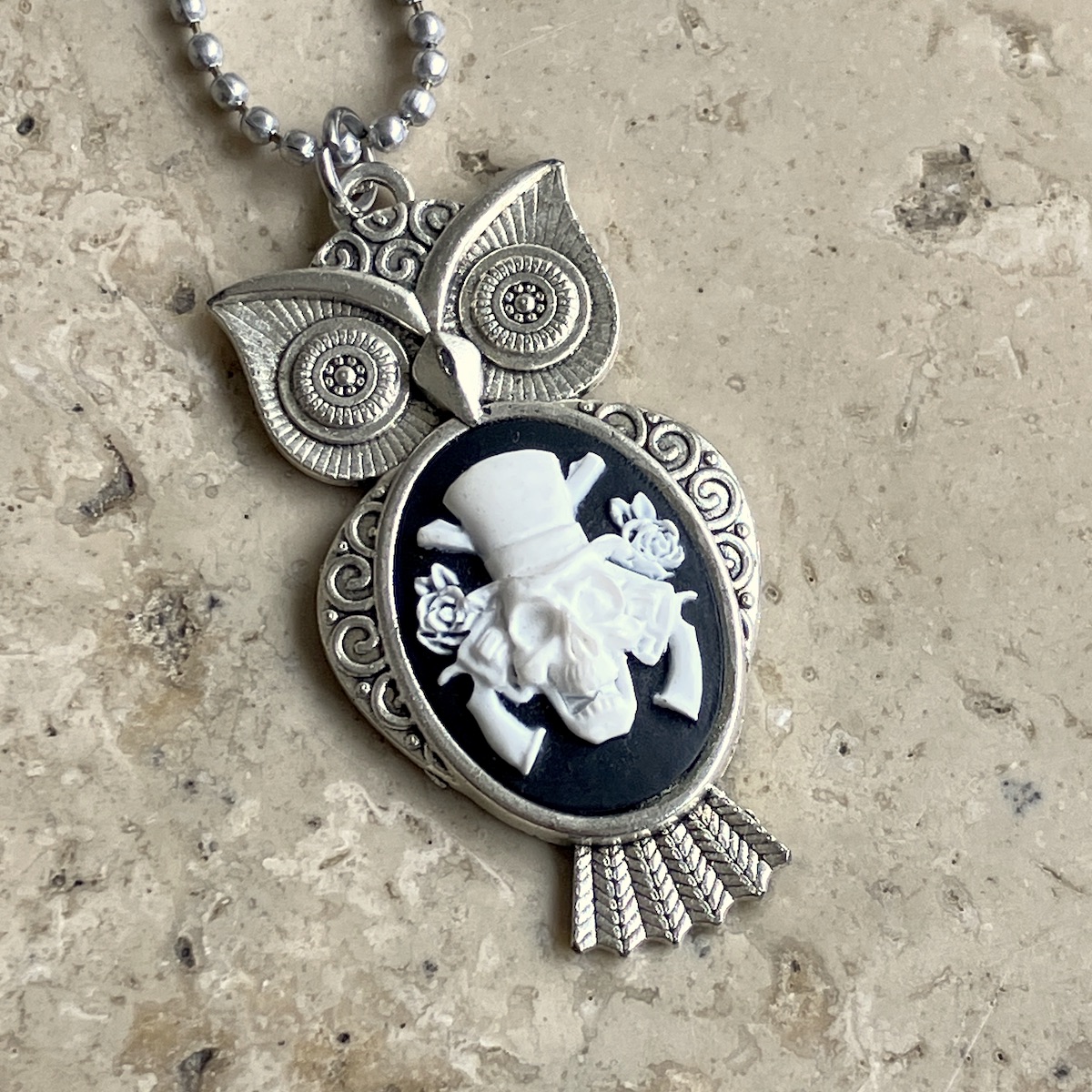Pendentif en métal monté d’un camée en RÉSINE (4cm*3cm).