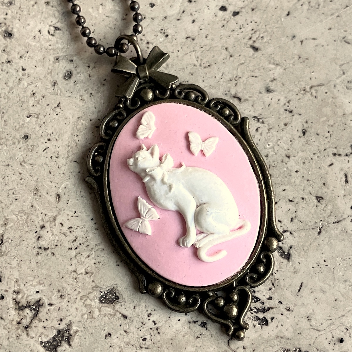 Pendentif en métal monté d’un camée en RÉSINE (4cm*3cm).
