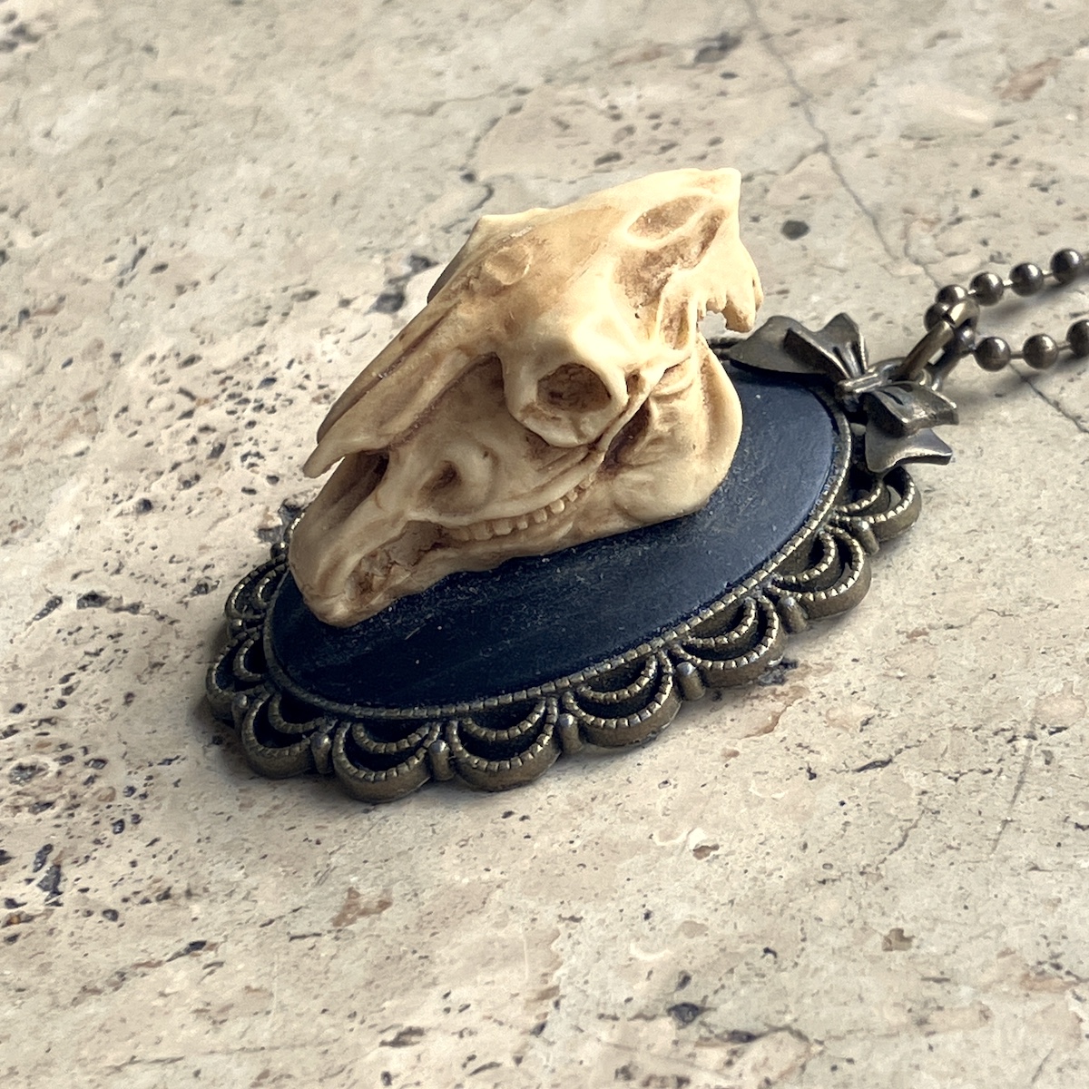 Pendentif en métal monté d’un camée en RÉSINE (4cm*3cm).