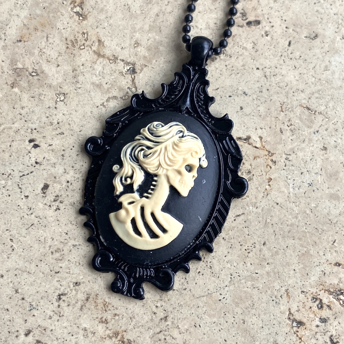 Pendentif en métal monté d’un camée en RÉSINE (4cm*3cm).