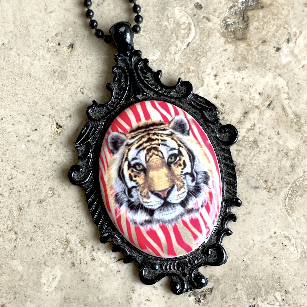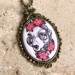 Pendentif en métal monté d’un camée en céramique (4cm*3cm) imprimée artisanalement par mes soins.