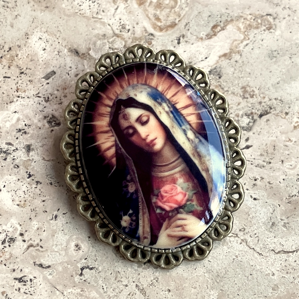 Broche en métal montée d’un camée en céramique (4cm*3cm) imprimée artisanalement par mes soins.