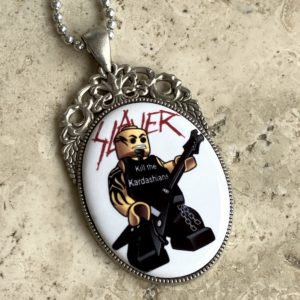 Pendentif en métal monté d’un camée en céramique (4cm*3cm) imprimée artisanalement par mes soins.
