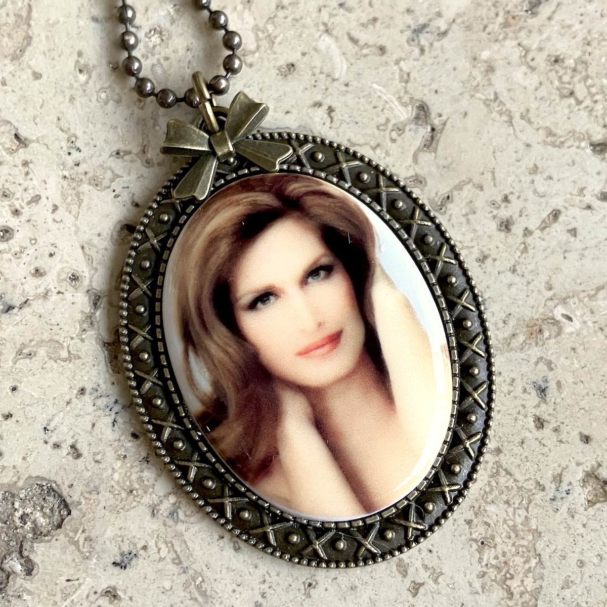 Pendentif en métal monté d’un camée en céramique (4cm*3cm) imprimée artisanalement par mes soins.