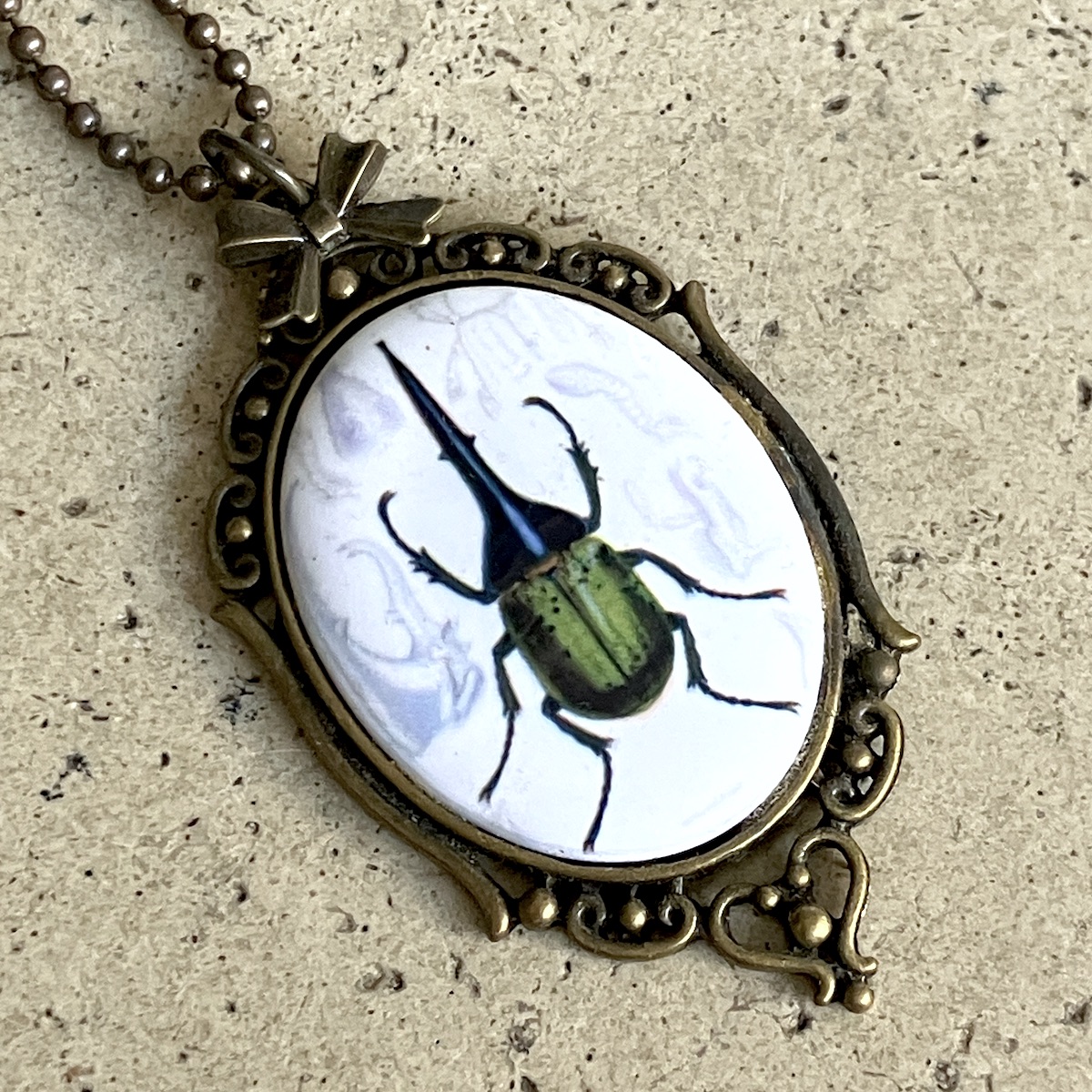 Pendentif en métal monté d’un camée en céramique (4cm*3cm) imprimée artisanalement par mes soins.