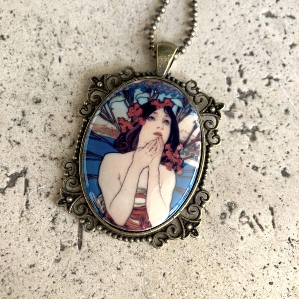 Pendentif en métal monté d’un camée en céramique (4cm*3cm) imprimée artisanalement par mes soins.