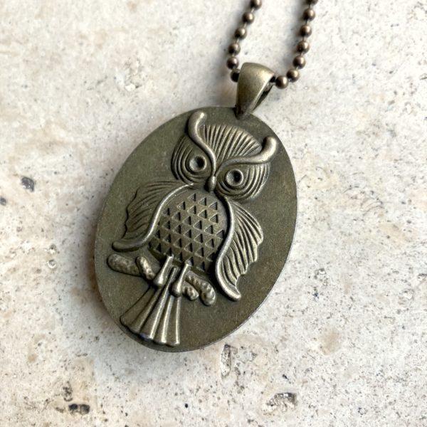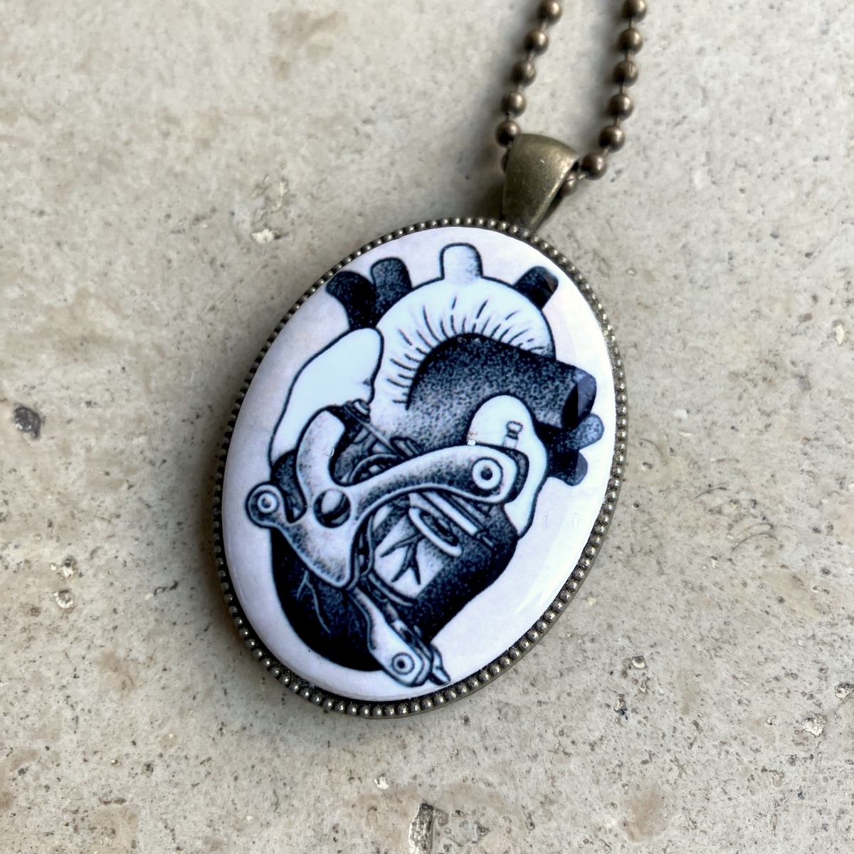 Pendentif en métal monté d’un camée en céramique (4cm*3cm) imprimée artisanalement par mes soins.