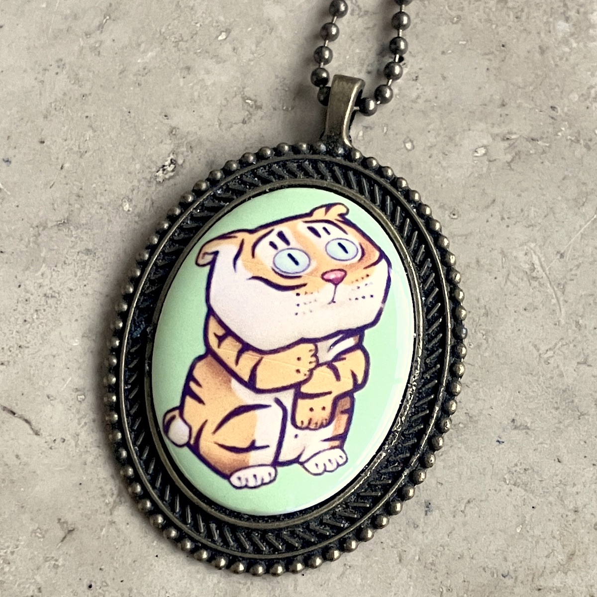 Pendentif en métal monté d’un camée en céramique (4cm*3cm) imprimée artisanalement par mes soins.