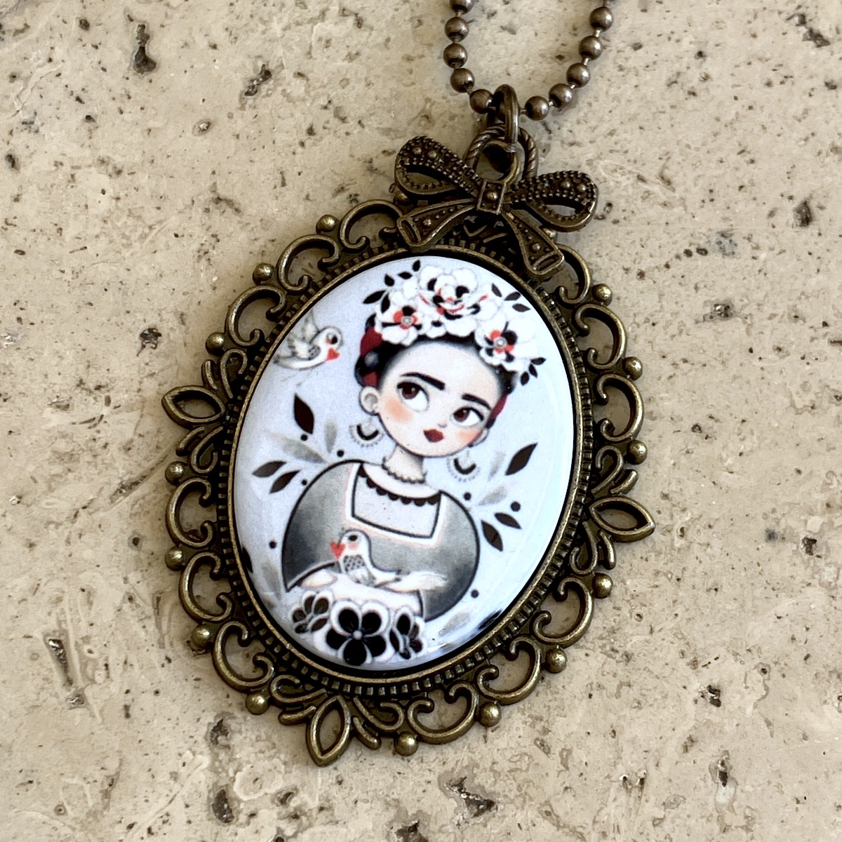 Pendentif en métal monté d’un camée en céramique (4cm*3cm) imprimée artisanalement par mes soins.