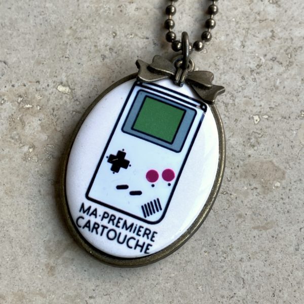 Pendentif en métal monté d’un camée en céramique (4cm*3cm) imprimée artisanalement par mes soins.