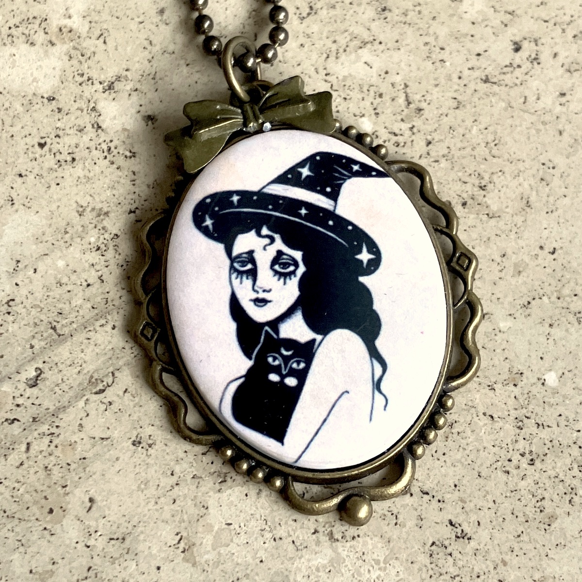Pendentif en métal monté d’un camée en céramique (4cm*3cm) imprimée artisanalement par mes soins.