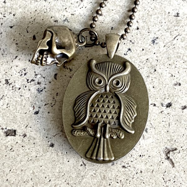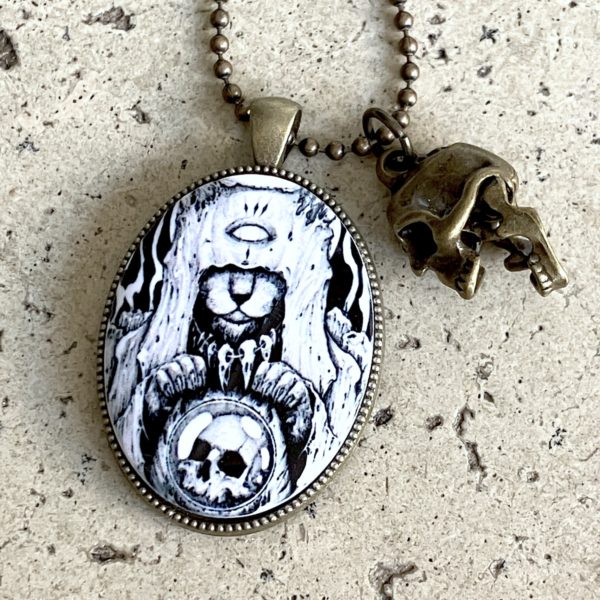 Pendentif en métal monté d’un camée en céramique (4cm*3cm) imprimée artisanalement par mes soins.