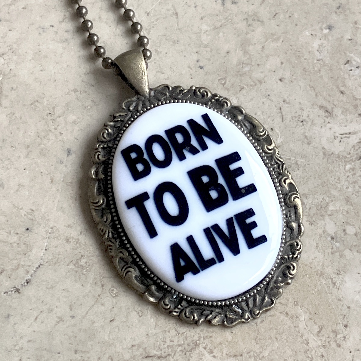 Pendentif en métal monté d’un camée en céramique imprimée artisanalement par mes soins.