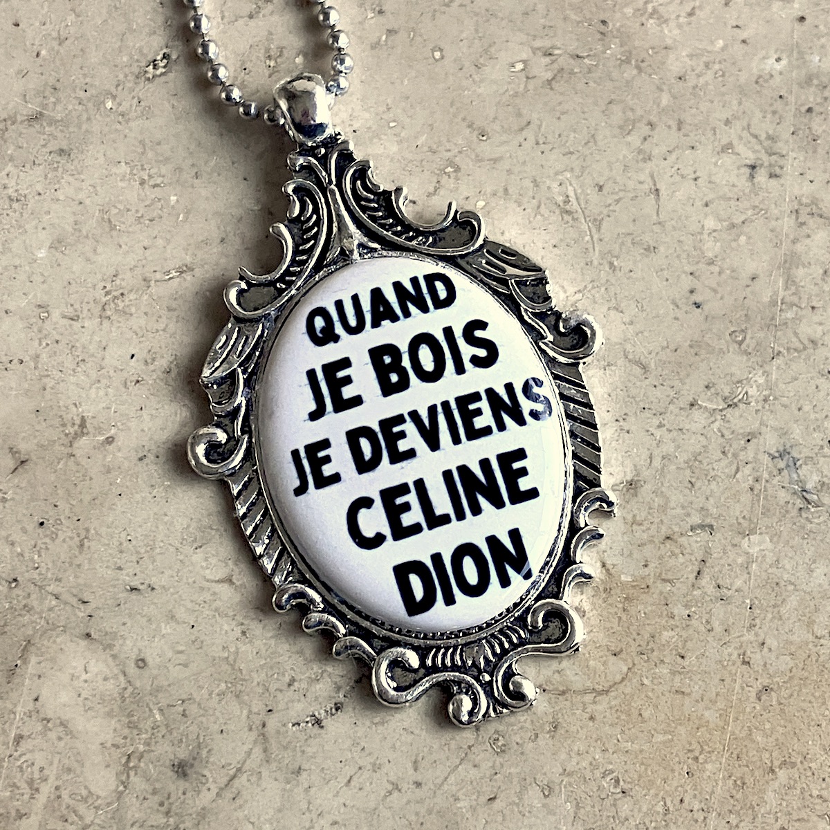 Pendentif en métal monté d’un camée en céramique imprimée artisanalement par mes soins.