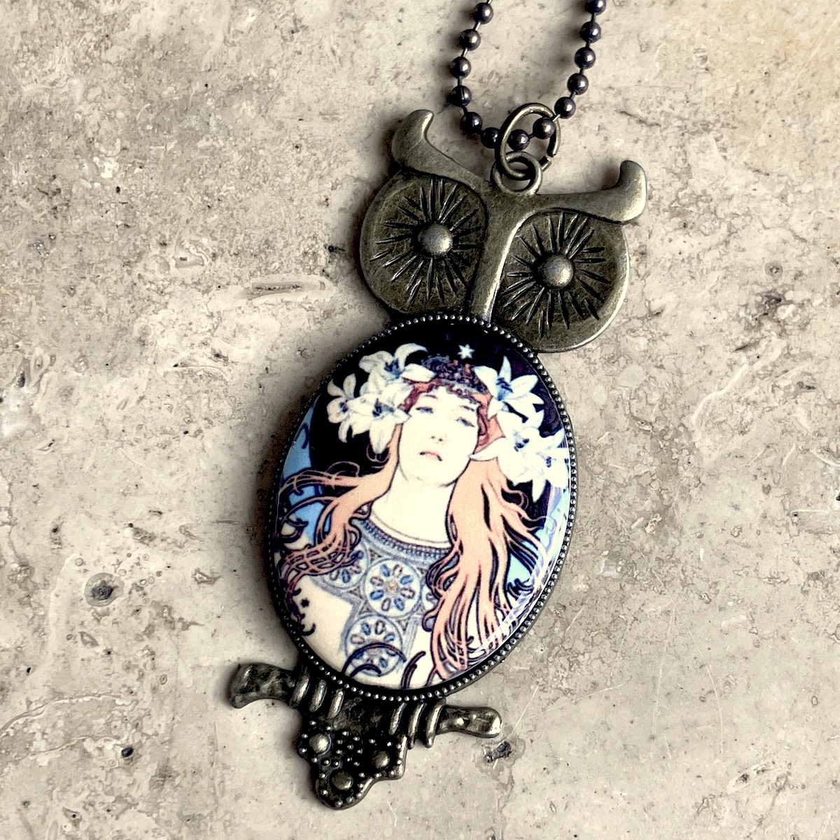Pendentif en métal monté d’un camée en céramique (4cm*3cm) imprimée artisanalement par mes soins.