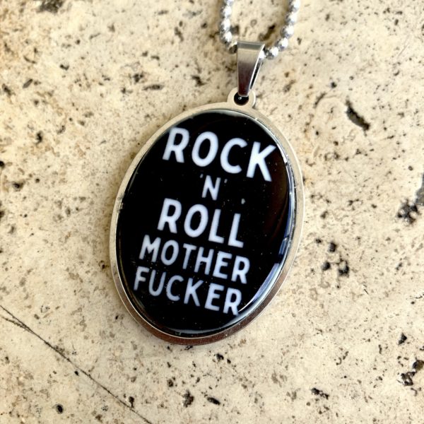 Pendentif en métal monté d’un camée en céramique imprimée artisanalement par mes soins.