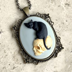Pendentif qui s’ouvre (pilulier) en métal, monté d’un camée en céramique (4cm*3cm) imprimée artisanalement par mes soins.