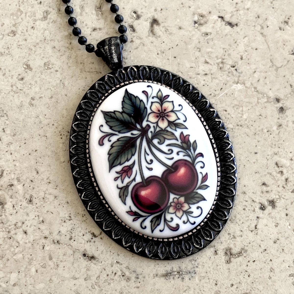 Pendentif en métal monté d’un camée en céramique (4cm*3cm) imprimée artisanalement par mes soins.