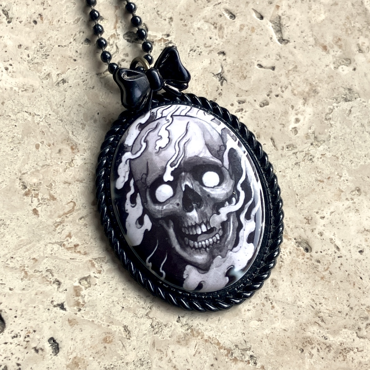 Pendentif en métal monté d’un camée en céramique (4cm*3cm) imprimée artisanalement par mes soins.