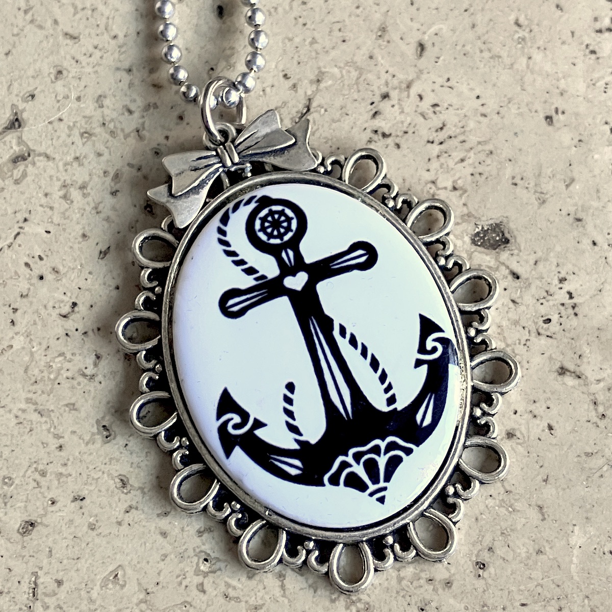 Pendentif en métal monté d’un camée en céramique (4cm*3cm) imprimée artisanalement par mes soins.